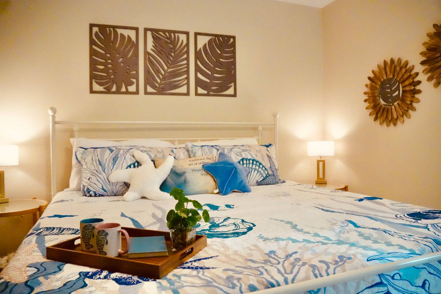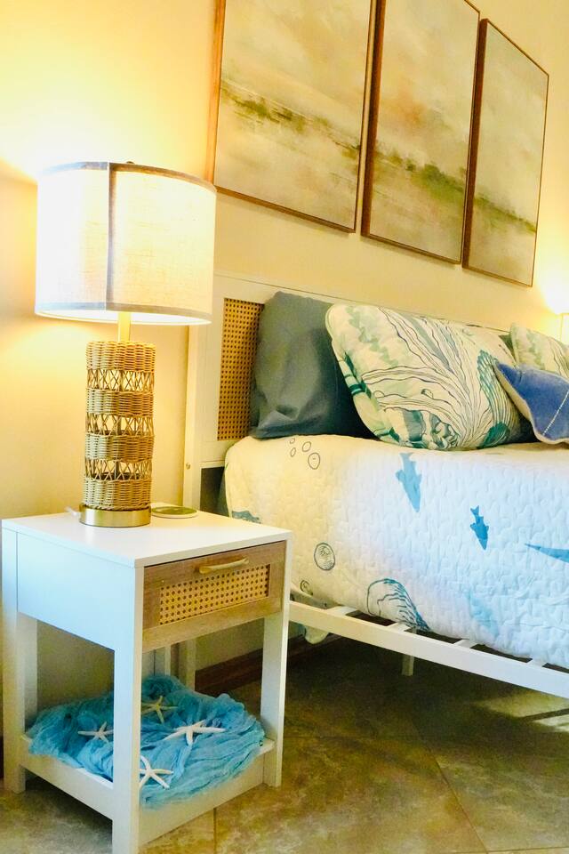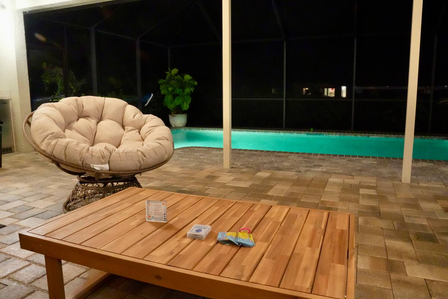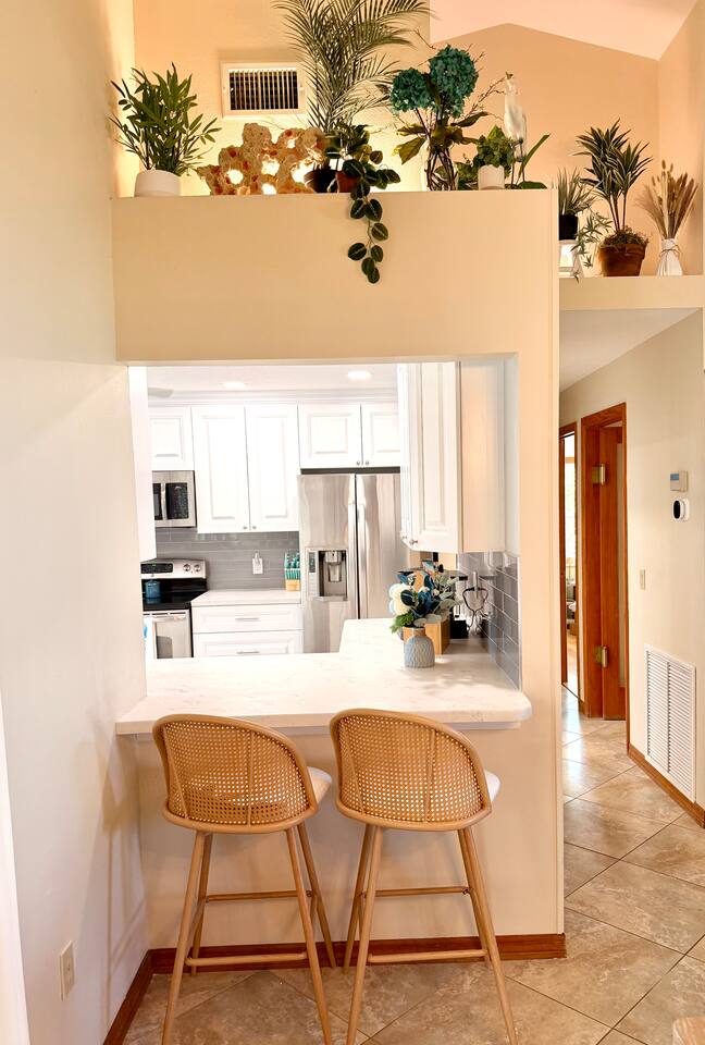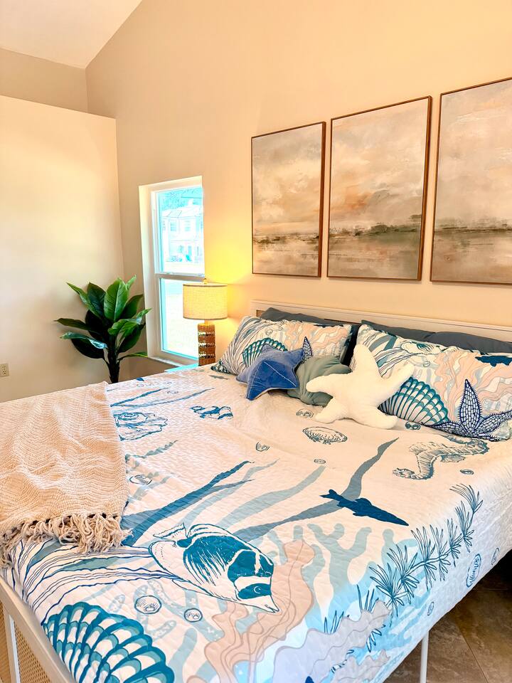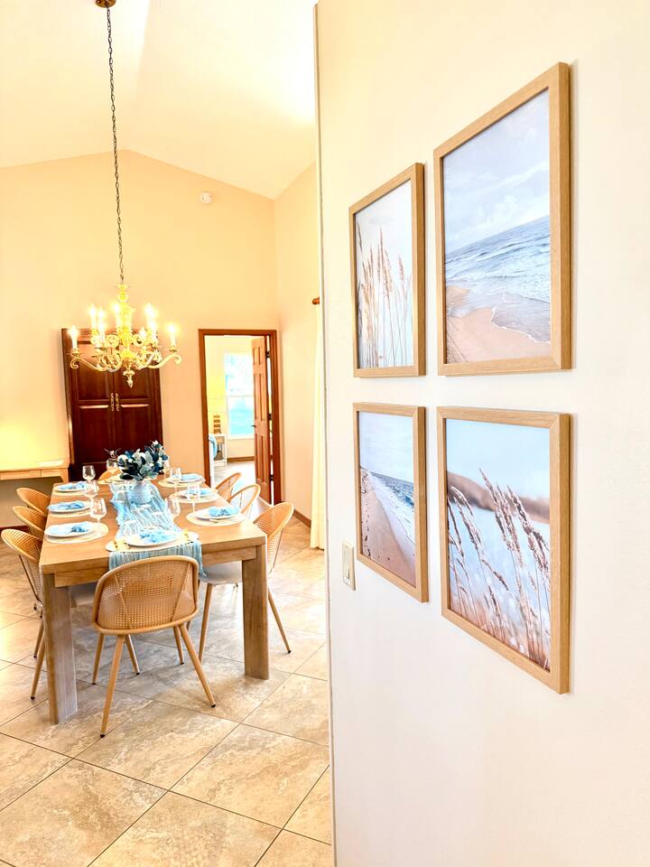 Property Details – The Floaty Potato Bedrooms & Bathrooms - 3 Bedrooms · 2.5 Bathrooms · Sleeps 8-9 - Primary Suite: King bed, ensuite with jetted tub, direct pool access, Smart TV - Bedroom 2: King bed, Smart TV - Bedroom 3: Two twin beds with twin trundles and a child-size fold-out chair (sleeps up to 5 children or 2 adults), Smart TV Autism-friendly items available upon request: body sock, weighted blanket, sensory fidgets, peanut ball, and silencing headphones Kitchen & Dining - Fully equipped kitchen with stainless steel appliances, crockpot, griddle, toaster, blender and tea kettle (bring your own food and drinks). - Coffee station with large starter supply of K-cups, grounds, tea, cocoa, creamer, and honey. - Four dining areas: solid oak kitchen nook (4), bar (2), solid wood dining table (8), and patio table (4) - Baby and child items: highchair, baby monitor, unbreakable BPA-free dishes, sippy cup, bib, and kids’ books Living & Entertainment - Open-concept living area with Smart TV, solid oak entertainment center with furniture covers and elegant coastal décor - Garage games: ping-pong table and basketball arcade -Indoor games: family board games - Couch covers for furry friends or those with sticky fingers (located in entertainment center) - Desk and computer chair with high-speed WiFi Outdoor Living - Screened-in SOLAR-HEATED pool included year-round. For an extra boost of warmth... OPTIONAL electric pool heat available November–March for $40/night (Added upon request. Must be paid in advance). - Outdoor kitchen with grill, sink, and mini-refrigerator - Floating and stationary docks with a fish-cleaning station - Garage Fridge to store your catch or extra groceries - Boat lift (bring or rent your own boat). Must sign additional user agreement before use. No extra cost. - Fenced yard for privacy and safety - Outdoor games: cornhole, chalk, and sports balls Adventure Gear - 3 fishing kayaks, 1 youth kayak, 1 paddleboard, life jackets for all sizes - 3 adult fishing rods, 1 youth fishing rod, small assortment of tackle. - 2 adult bikes, 1 tandem bike, and 1 youth bike - Pool toys included - Beach bag pre-packed with sand toys and beach blanket. We have two beach chairs and a large empty cooler in the garage ready for your own snacks for a day at the beach! Extra Amenities - Professionally serviced for pests (That said, it is Florida and on the canal. Bugs happen.) - Pool professionally serviced with both solar-heat (year round) and electric (optional for an additional fee). - 90% all-natural cleaning and bath products - Smart thermostat and Wi-Fi - Outdoor security cameras (front and canal areas only) - Extra fridge in garage for fresh fish, scallops, or extra groceries - All guests must sign rental agreement.